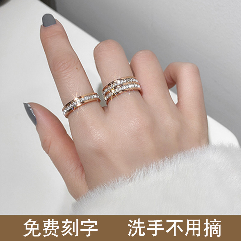 钛钢玫瑰金食指戒指环女时尚个性满天星小ck钻戒石小众设计ins潮热门设计联盟服务商