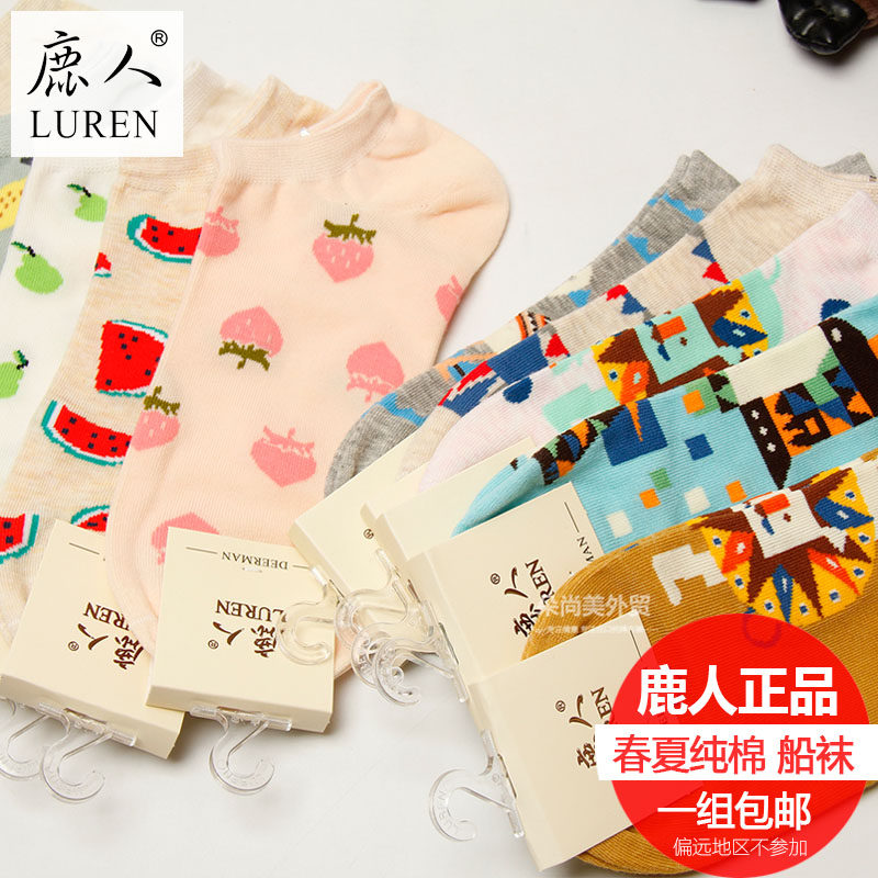 5双一组 鹿人正品春夏季女袜棉薄款船袜低帮浅口短袜子可爱卡通热门设计联盟服务商