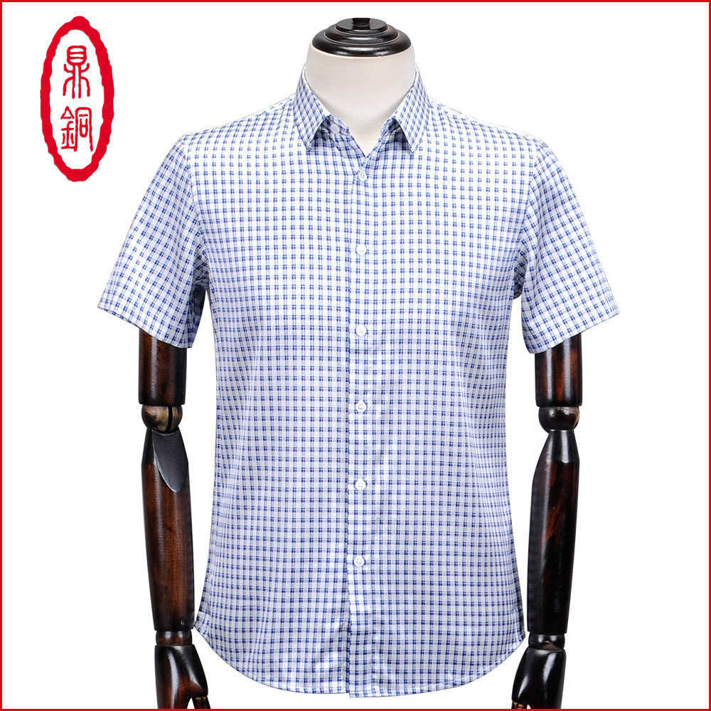 鼎铜男装新款男短袖衬衣格子衬衫高端蚕丝短袖衬衫男衬衣商务休闲热门设计联盟服务商