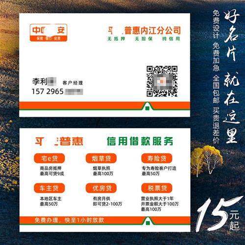 中国平安普惠贷款名片制作订做免费设计卡片个性定制pvc彩色双面热门设计联盟服务商