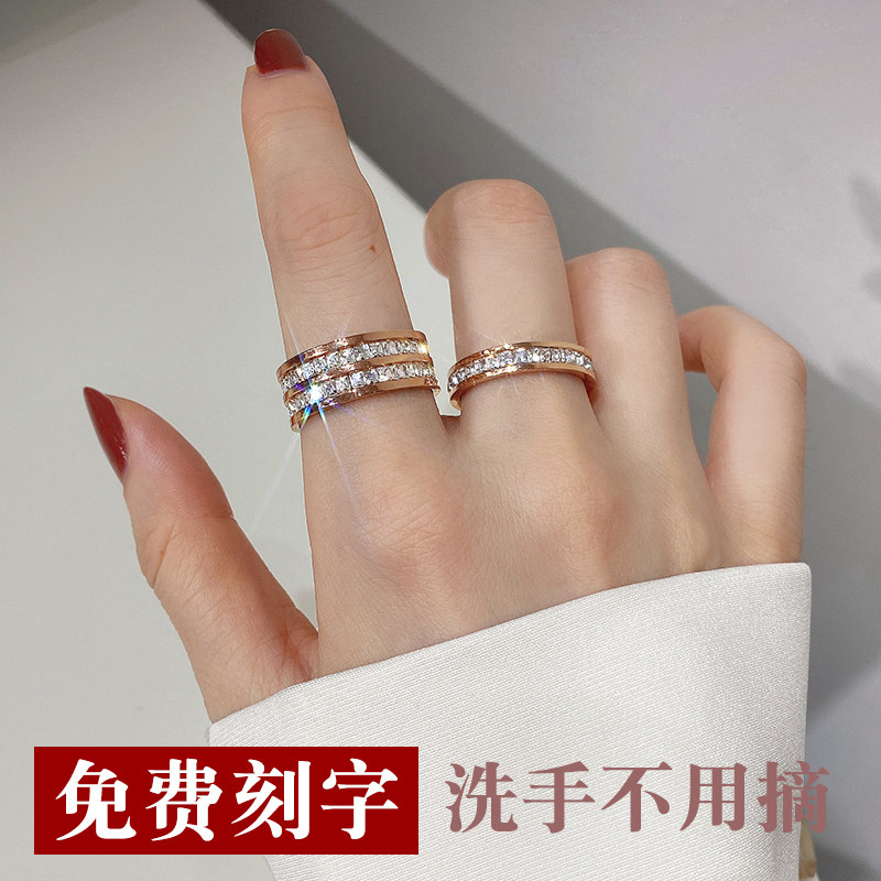 钛钢玫瑰金食指戒指环女时尚个性满天星钻石小众设计ins潮冷淡风热门设计联盟服务商