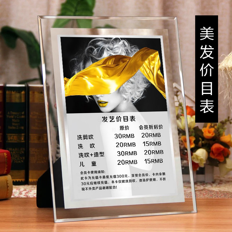 美发店理发店价目表价格表定制水晶玻璃摆台设计发廊广告展示牌热门设计联盟服务商