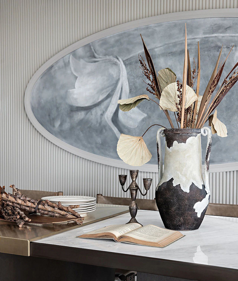 民宿侘寂自然风刻花纹手工陶瓷花瓶器可可花荷叶样板房售楼处摆件热门设计联盟服务商