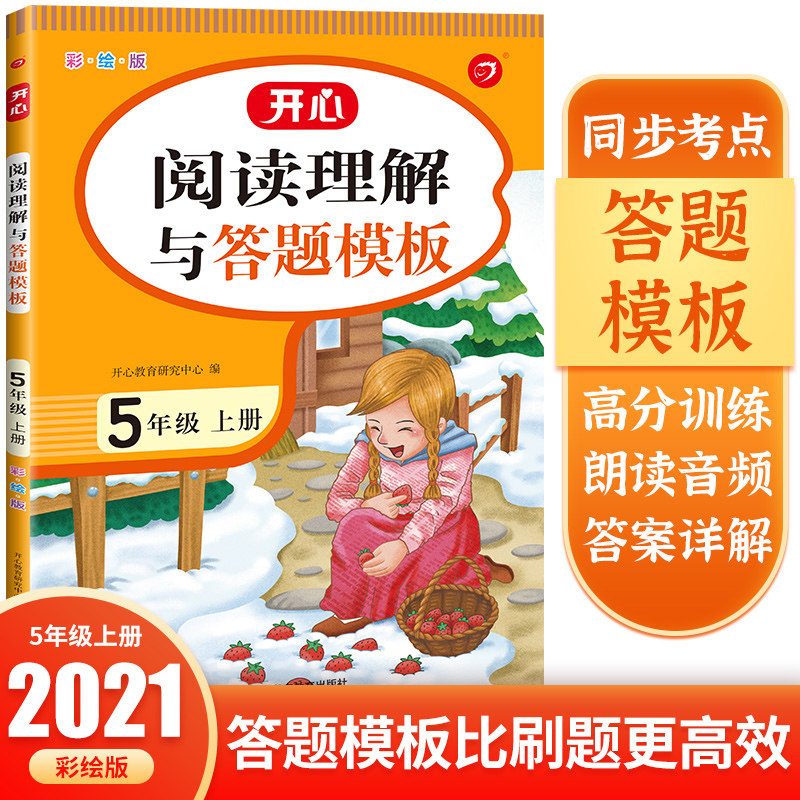 开心 2021新版阅读理解与答题模板五年级上册语文人教版部编版小学生5年级上册彩绘课外阅读理解书同步专项训练册每日一练写作技巧热门设计联盟服务商