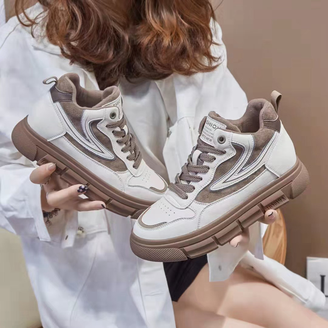 佰诗奴高帮鞋女2021款真皮厚底秋冬季加绒保暖休闲鞋439141011热门设计联盟服务商