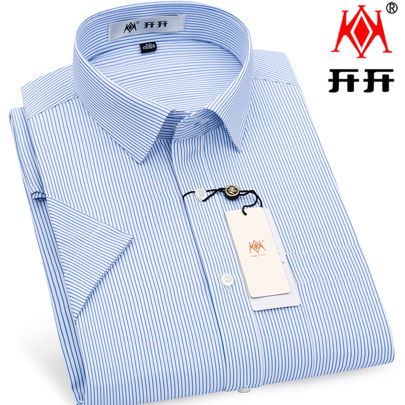 开开夏季男士短袖衬衫商务休闲银行正装职业工装蓝色条纹半袖衬衣热门设计联盟服务商