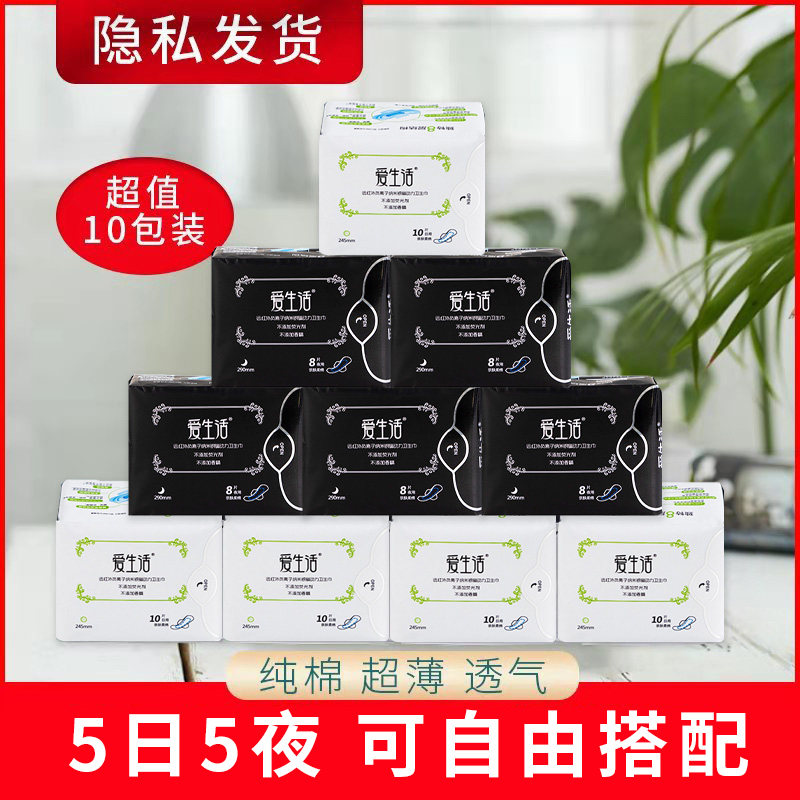 绿叶爱生活卫生巾日用夜用组合装超薄棉柔负离子姨妈巾整箱10包热门设计联盟服务商
