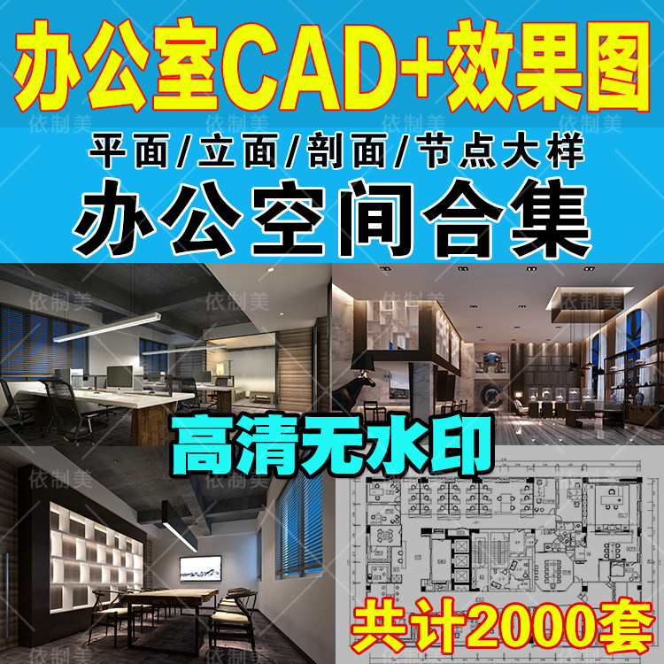 办公室空间写字楼CAD施工图纸方案平面图室内设计3D效果图库素材热门设计联盟服务商