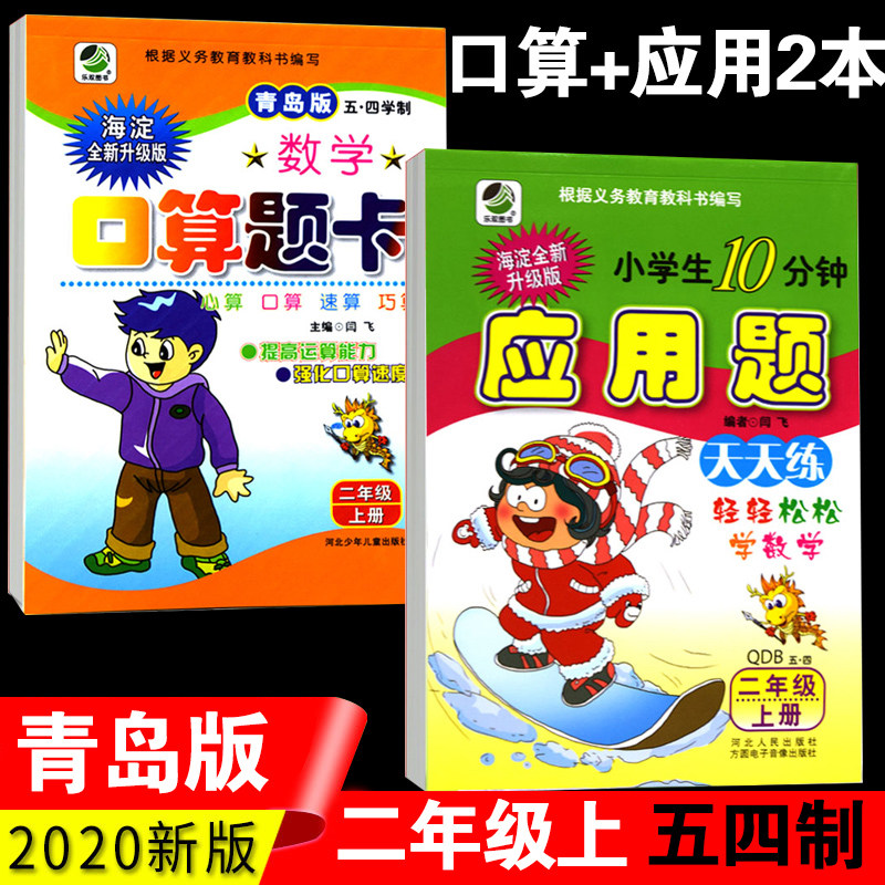 2020秋季适用 二年级青岛版五四制海淀二年级上册 口算题卡+应用题卡 两册套装配套五四青岛版鲁教教才辅导小学2年级上册数学热门设计联盟服务商