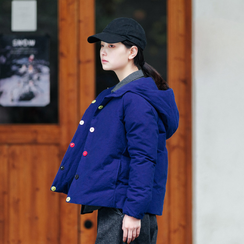 2021冬季新款藏蓝色纯棉暗扣轻薄短款保暖连帽白鹅绒羽绒服女款热门设计联盟服务商
